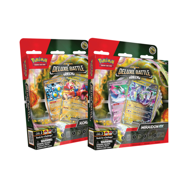 Con estrategias más avanzadas y cartas poderosas adicionales, las nuevas barajas Combate Deluxe de JCC Pokémon ofrecen un paso adelante a los jugadores que están listos para un desafío. Cada baraja de 60 cartas contiene 3 cartas holográficas y todo lo que necesitas para ponerte a jugar de inmediato. ¡Que empiece el combate Deluxe!