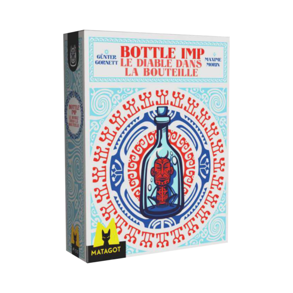 En este juego inspirado en la novela homónima de Robert Louis Stevenson, todos los jugadores de la mesa quieren hacerse con la botella maldita que puede conceder todos los deseos… Sin embargo, ¡deben deshacerse de ella antes del final! Consigue puntos intentando llevarte tantas bazas como puedas, pero asegúrate de no acabar la partida con la botella, ¡o el diablillo de la botella te quitará los puntos!
