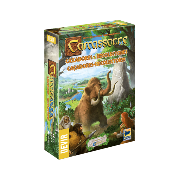 Carcassonne: Cazadores y Recolectores es un juego basado en las mecánicas de “Carcassonne”, ambientado en la Edad de Piedra. Los jugadores formarán un territorio con sus losetas y tratarán de hacerse con la mayor cantidad de puntos a través de sus seguidores. Estos se podrán colocar en ríos, lagos, bosques o territorios de caza.