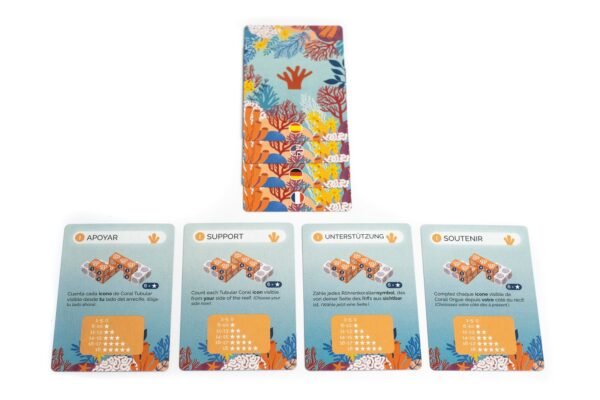 Lo que distingue a Coral en el mercado actual es su enfoque en la cooperación dentro de la competición. Mientras trabajas junto con otros jugadores para construir el arrecife, también estás en una carrera para asegurar que tus especies sean las más dominantes al final del juego, observando el arrecife desde arriba para contar los iconos de tu especie que están visibles. Esta dualidad captura la esencia de la vida en el arrecife, donde cada organismo depende de otros, mientras compite por los recursos limitados.