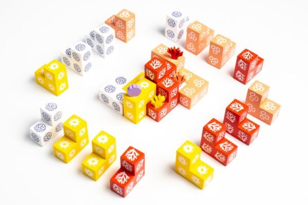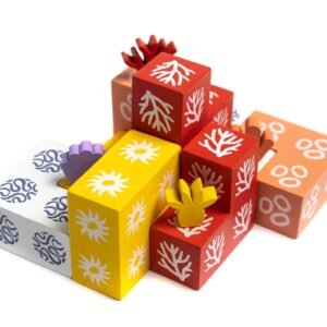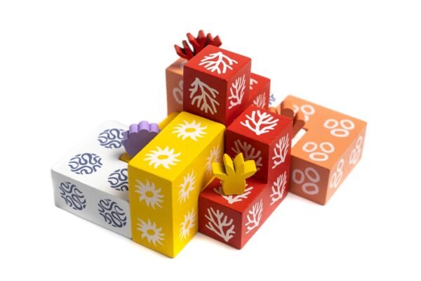 En cada turno, tendrás la opción de agregar una nueva pieza de coral al arrecife en expansión o mover tu peón en busca del lugar más ventajoso para prosperar. Esta mecánica simple, pero profundamente estratégica, fomenta la toma de decisiones críticas y la planificación anticipada. A medida que el arrecife crece en su esplendor tridimensional, no solo estarás construyendo una estructura magnífica, sino también una dinámica de juego que refleja la complejidad y la belleza de los arrecifes reales.