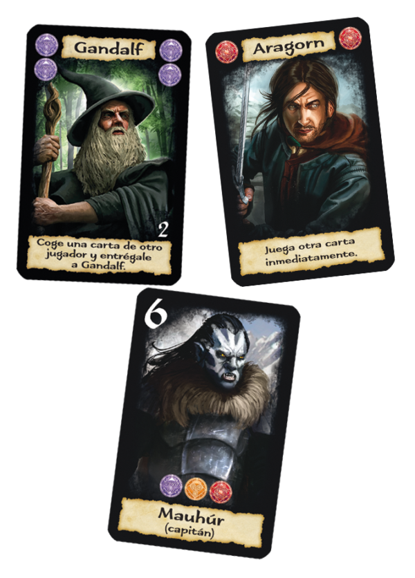 El juego está formado por dos mazos: en primer lugar, 43 cartas del Anillo, que incluyen compañeros y cartas de Mordor. En segundo lugar, 21 cartas de enemigo, que nos proporcionarán puntos de victoria cuando los derrotemos.