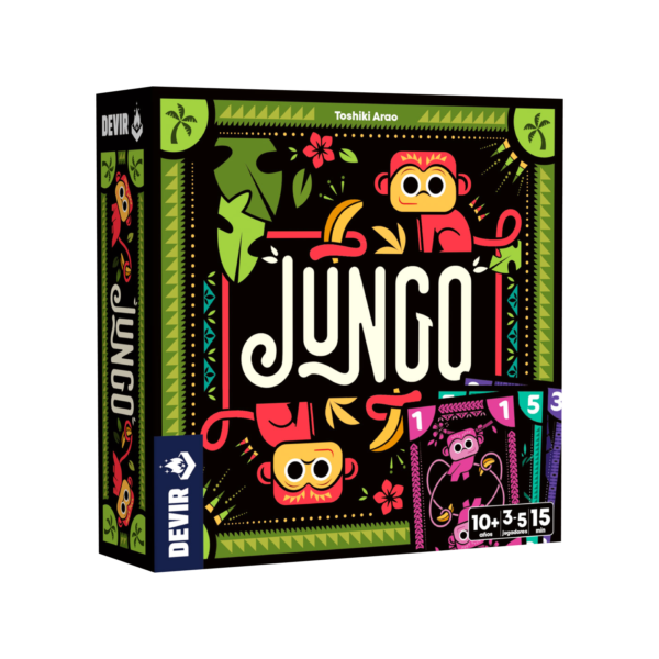 Diseñado por Toshiki Arao e ilustrado por Laura Michaud (Hanabi, Trio), este juego de cartas lo pueden disfrutar grupos de 3 a 5 jugadores a partir de los 10 años. Jungo nos reta a deshacernos de todas las cartas antes que lo hagan nuestros oponentes, formando y lanzando conjuntos de cartas.