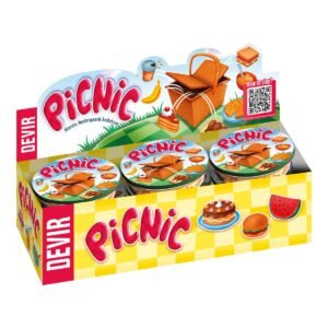 Disfruta de tu día de Picnic con este juego rápido y familiar en el que los jugadores tendrán que deshacerse de todas las cartas de su mano lo antes posible. En Picnic cada jugador elige cual va a ser su comida favorita durante la partida. ¿Deliciosos sandwiches? ¿Sabrosos pasteles? ¿Refrescantes piezas de fruta? Se reparten todas las cartas y cada jugador deberá ser el primero en deshacerse de todas ellas, de una en una, siguiendo el orden numérico de la última carta jugada. Un juego adictivo para toda la familia ideal para llevárselo de Picnic.