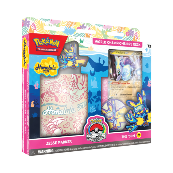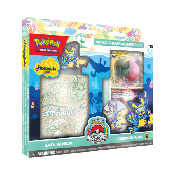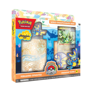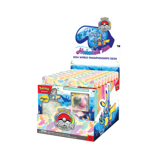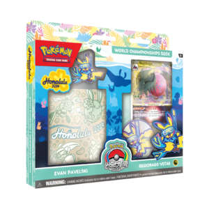 ¡Llévate un mazo del Campeonato Mundial de Pokémon y juega como todo un campeón! Escoge uno de los cuatro poderosos mazos, ¡cada uno es una réplica del mazo de uno de los competidores oficiales del Campeonato Mundial de Pokémon en Honolulu!