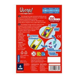 Vuelve el clásico, pero ahora en formato compacto y para disfrutar en solitario. Esta edición de Ubongo! está especialmente diseñada para que la juegues en cualquier lugar y en cualquier momento. Dentro de una caja resistente de plástico, que incluye un compartimento en forma de cajón, se guardan 20 tarjetas y las 15 piezas de juego.
